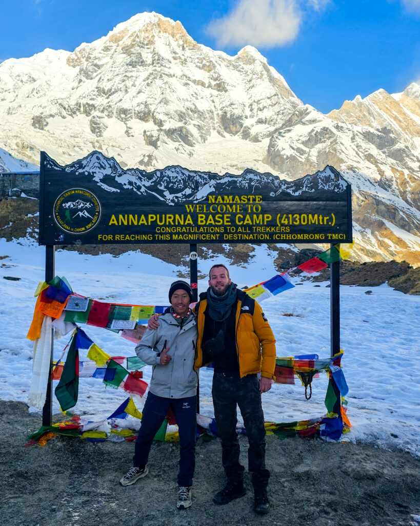 Je recommande de partir avec Pema (WhatsApp : +977-986-3374980). N’hésitez pas à lui dire que vous venez de ma part. C’est un guide tibétain qui connaît le parcours parfaitement, sélectionne les meilleures guesthouses, et est d’une gentillesse rare. Je n’aurais pas pu espérer un meilleur compagnon de route. Gros avantage : si vous partez seul avec un sac suffisamment petit, Pema peut le porter pour vous — c’était son métier de base avant de devenir guide. Croyez-moi, quand vous montez des milliers de marches, ça change tout. Pensez à lui laisser un pourboire à la fin du parcours.